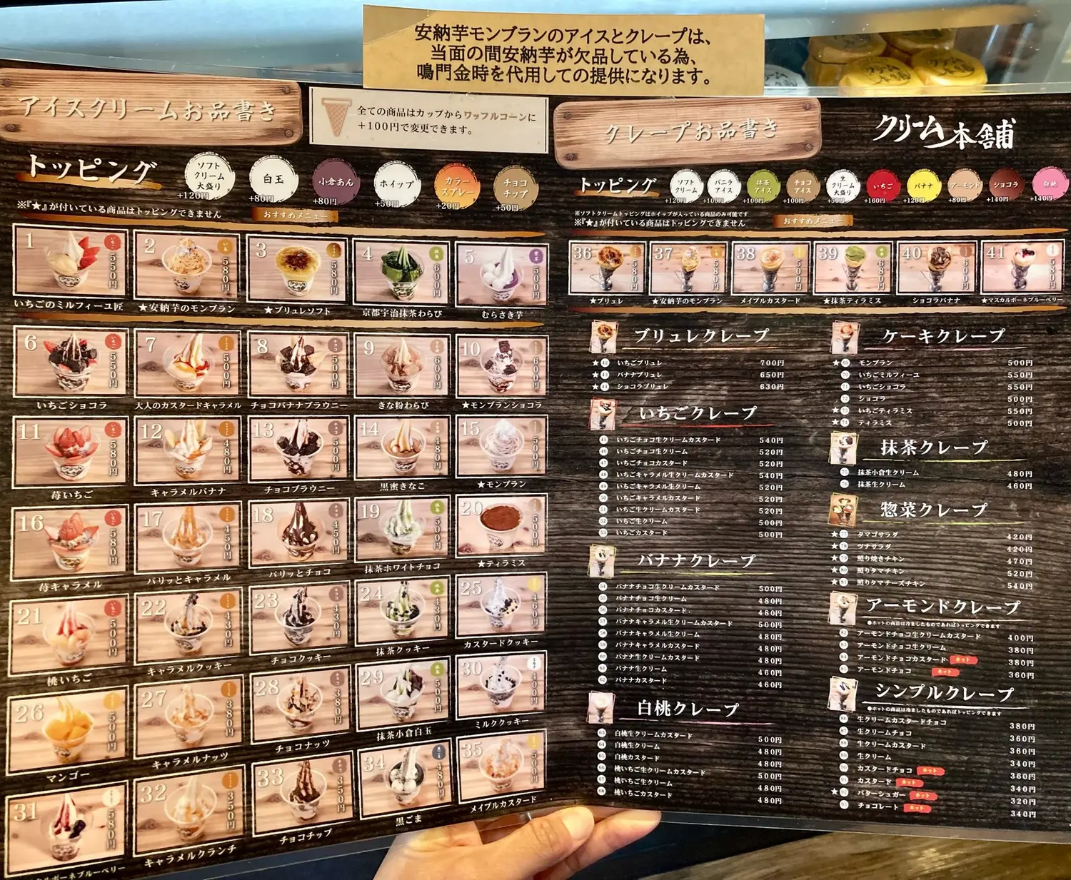 アイスクリームとクレープメニュー!