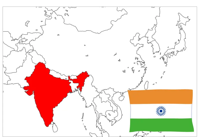 アジアの南部にある巨大な国で、多様な宗教や言語が共存。カレーなどスパイスたっぷりの料理や、ヨガ・映画「ボリウッド」でも知られ、文化もにぎやかで奥深~い。