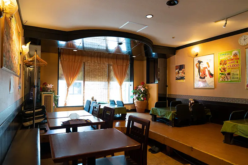 三崎町にあるタイ料理専門店。入った瞬間そこに広がるエスニック空間がたまりません!テーブルのほか、小上がりスペースもあります。