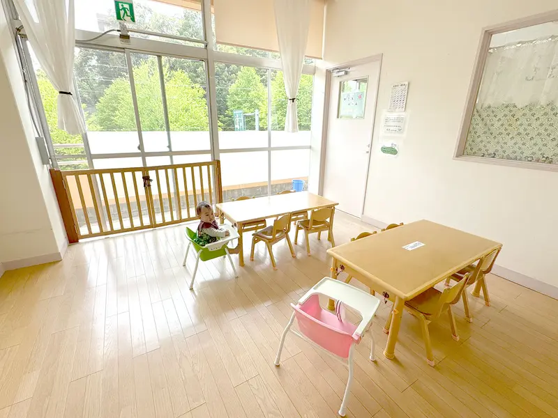 ご飯やおやつが食べられるスペースは常に開放されているので時間を気にせず使えます。大きな窓から差し込む光が心地よく、リラックスした雰囲気に。