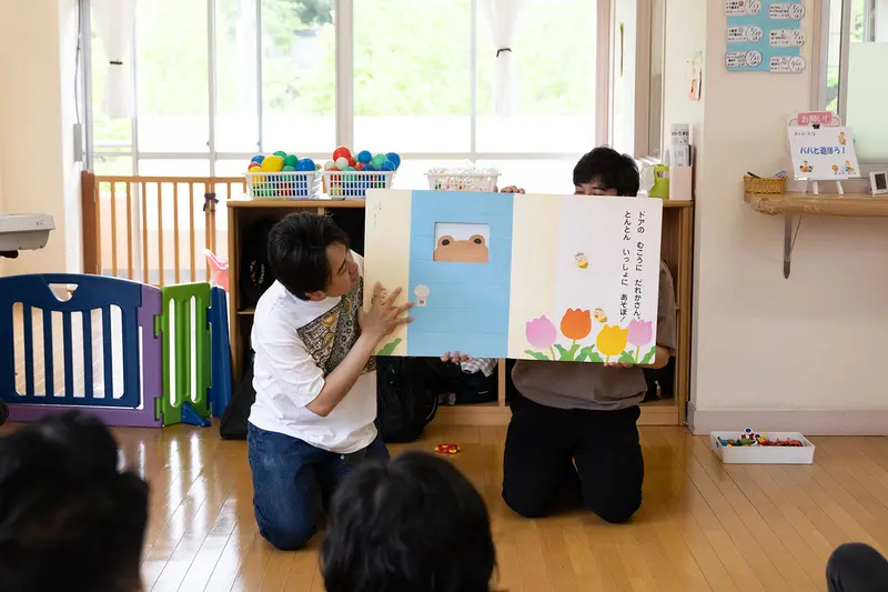 スタッフに指名されたパパが絵本を読む場面も!なかなか感情こもってます(笑)