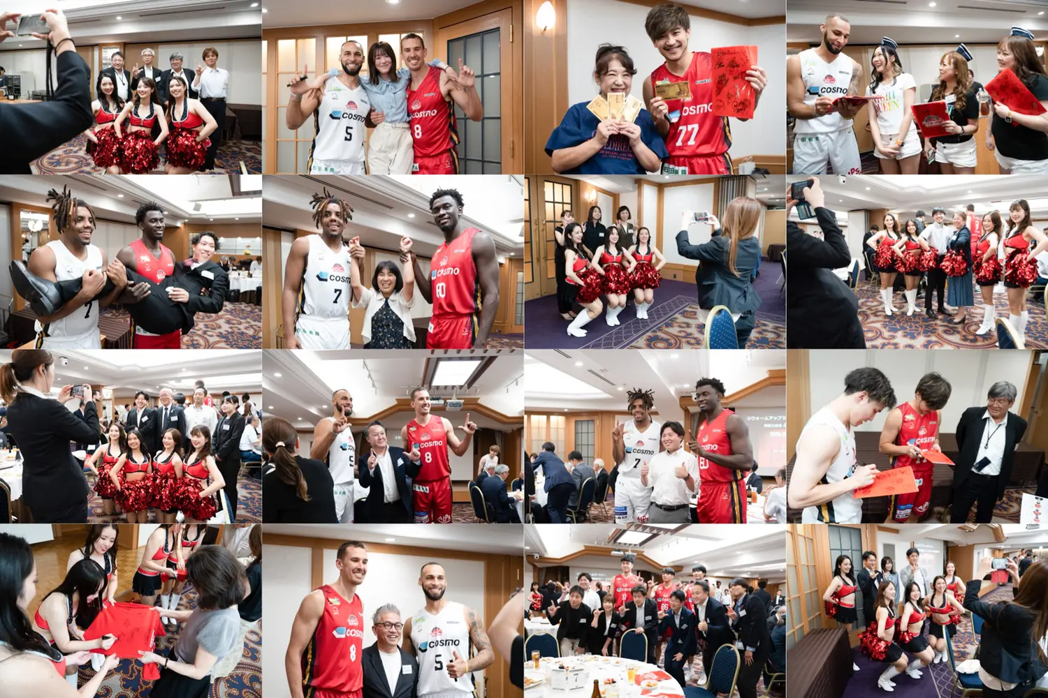 このパーティのメインイベント、それはビートレインズの選手やチアリーダー『Raily’s』とお話はもちろん、一緒に写真撮影したりサインをもらったりできること。選手たちの大きさやRaily’sの華やかさにみなさん大興奮。フロア中に笑顔や歓声があふれるひとときでした。