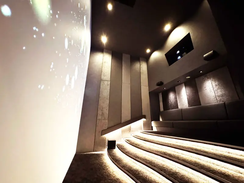 最初に案内されたのは、縦型シアタールーム。ほどよく照明を落とした空間で、ルネタワー八王子のプロモーションVTRが流れます。