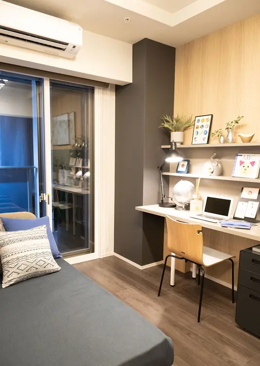 ワークルームや子ども部屋にも使えそうな個室はシックなデザイン。