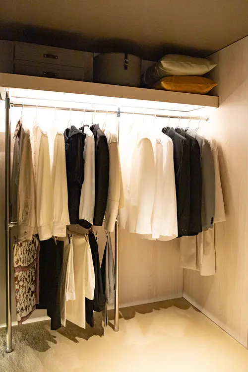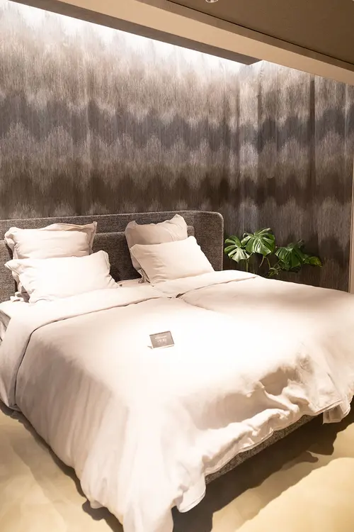 寝室はまるでホテルのような落ち着いた雰囲気。柔らかい照明に包まれて、1日の疲れがすっと溶けていくよう。