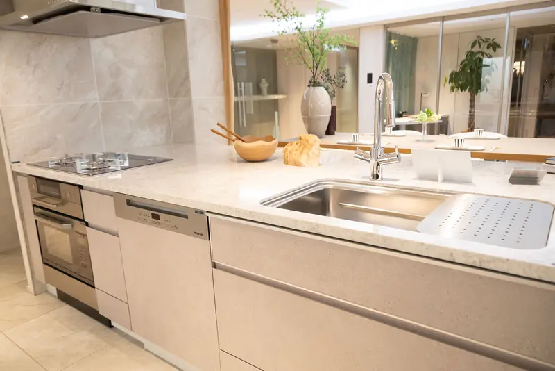 キッチンはダイニングと程よく一体感があり、食卓での会話も届く距離感。収納も多くキッチン回りがすっきり整います。