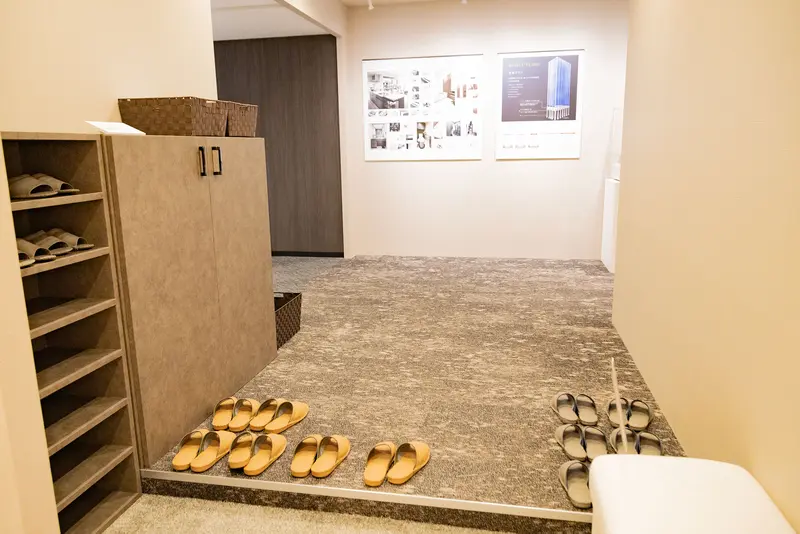 それではお楽しみの、2階のモデルルームブースに潜入!見学できるお部屋は2タイプあり、80平米と120平米のタイプとなっています。