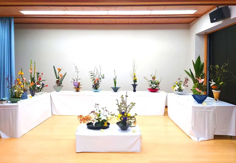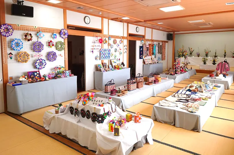 - 2階(多目的室・和室・音楽室):書道・いけ花・絵画・木彫・陶芸・手芸・短歌・俳句・写真・ほか展示