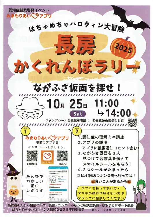 当日は、認知症理解・啓発をテーマにした長房かくれんぼラリー」も実施。スマートフォンアプリ「みまもりあいアプリ」を使って、地域に隠れた“ながふさ仮面”を探す参加型イベントです。