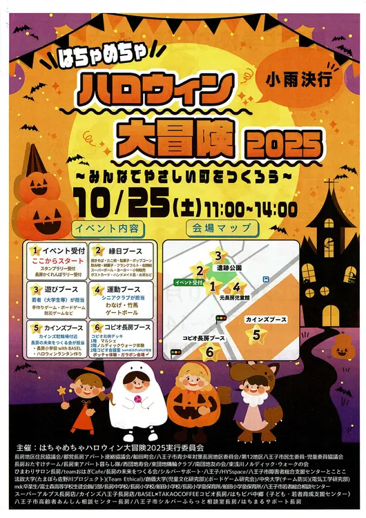 長房エリアがハロウィン一色に!2025年10月25日(土)に『はちゃめちゃハロウィン大冒険2025』が開催されます。スタンプラリーや手作りゲーム、ハンドメイド出店など盛りだくさん。子どもから大人まで楽しめる地域イベントです。