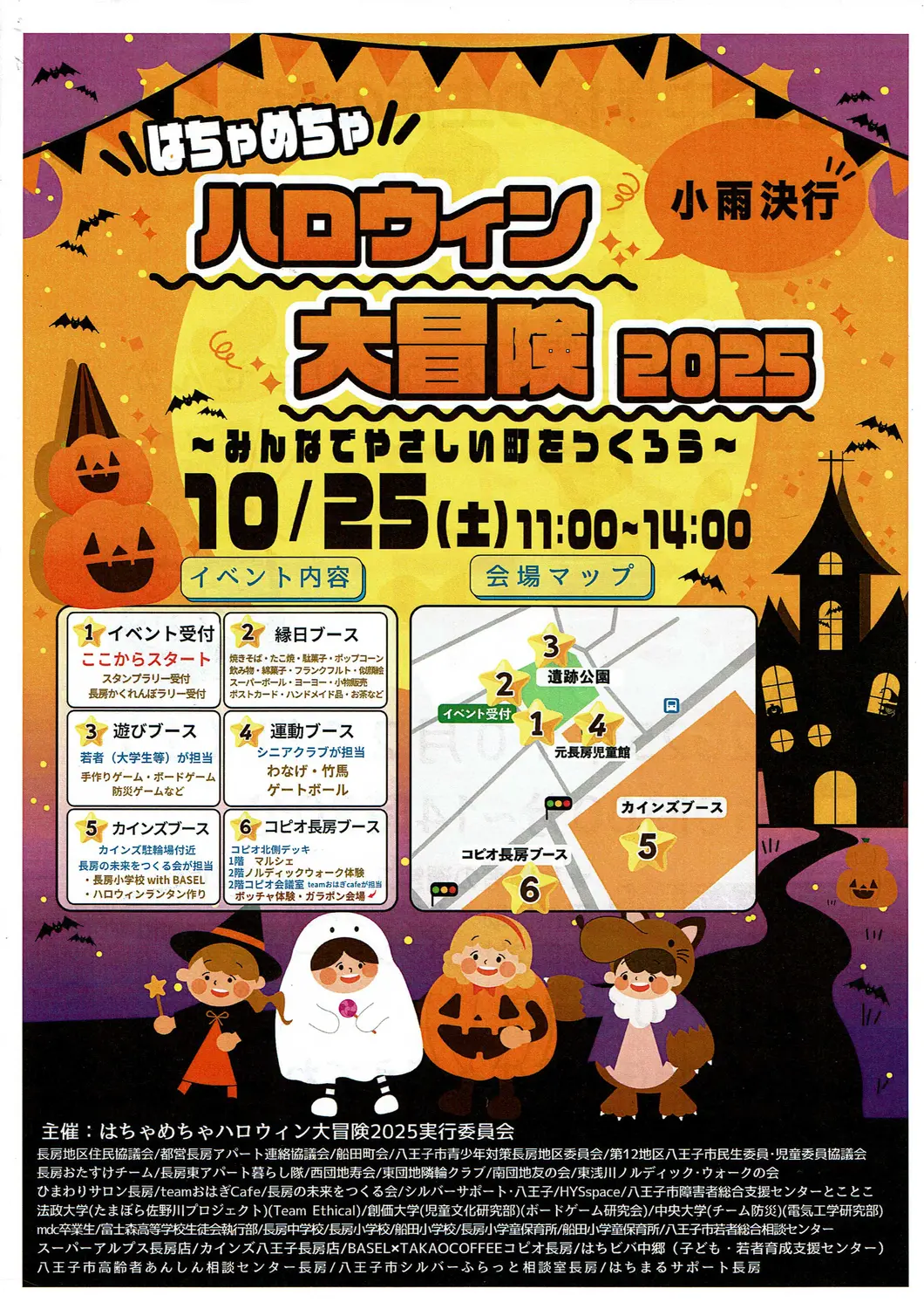 長房エリアがハロウィン一色に!2025年10月25日(土)に『はちゃめちゃハロウィン大冒険2025』が開催されます。スタンプラリーや手作りゲーム、ハンドメイド出店など盛りだくさん。子どもから大人まで楽しめる地域イベントです。