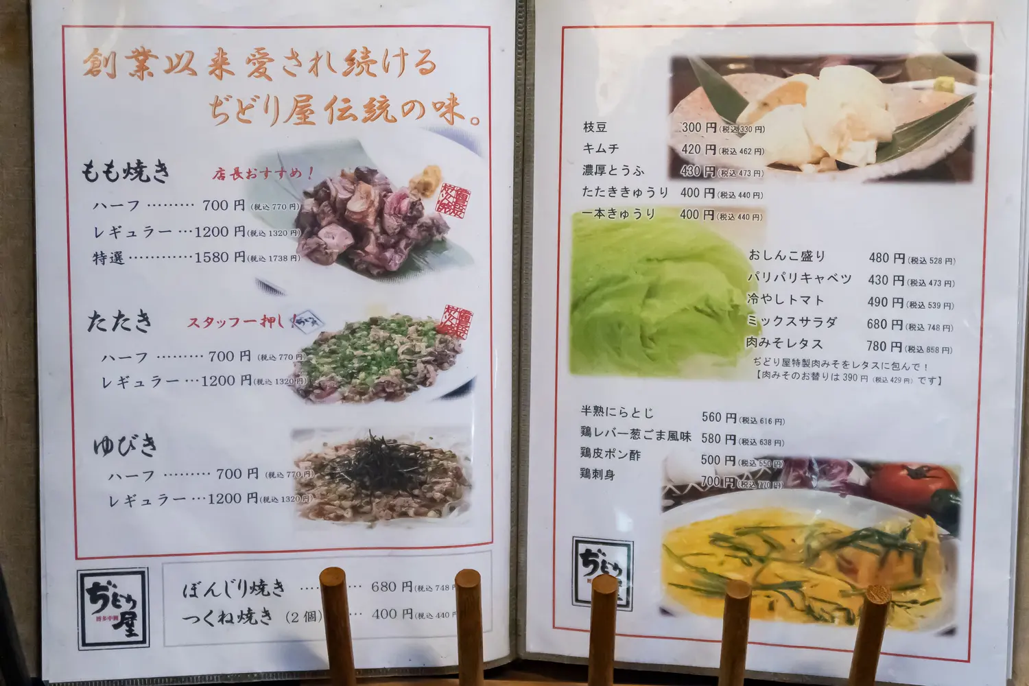 創業以来人気の『もも焼き』『たたき』『ゆびき』は、博多伝統の味。炭火で香ばしく焼き上げた鶏ももや、新鮮な鶏を使ったたたきなど、お酒との相性も抜群。