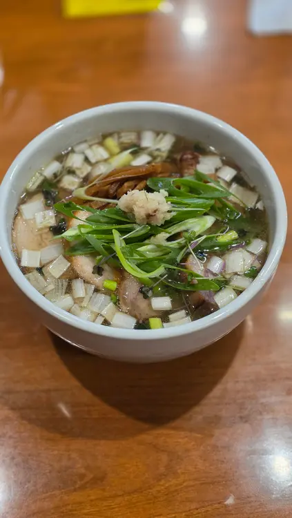 今回の限定ラーメンは『煮干し香る生姜風味の塩中華そば』です!トッピングはネギ、メンマ、新生姜、2種類のチャーシューが2枚づつ。