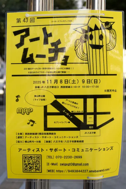 八王子駅北口の西放射線ユーロードが、アートと音楽にあふれる2日間!手作り作家やパフォーマーが大集合する大人気イベント『アートムーチョ』が、2025年11月8日(土)・9日(日)に開催されます。恒例のライブステージもパワーアップして登場!家族で楽しめる秋のおでかけにぜひ!