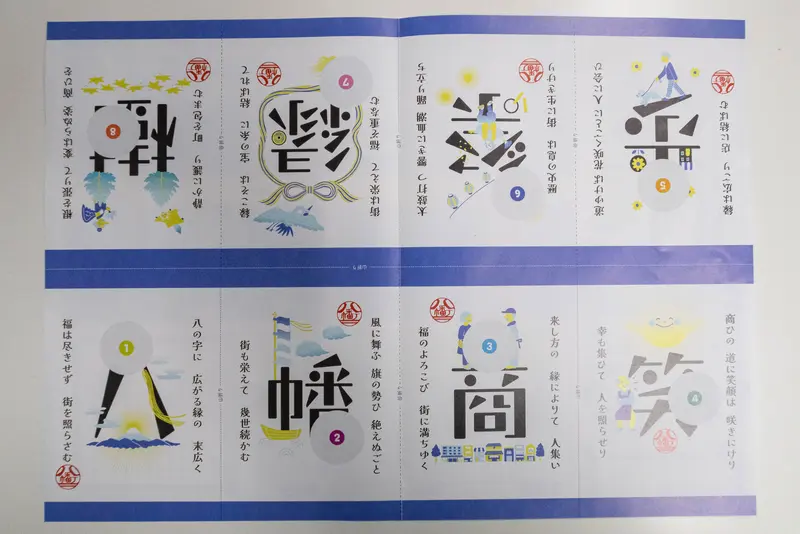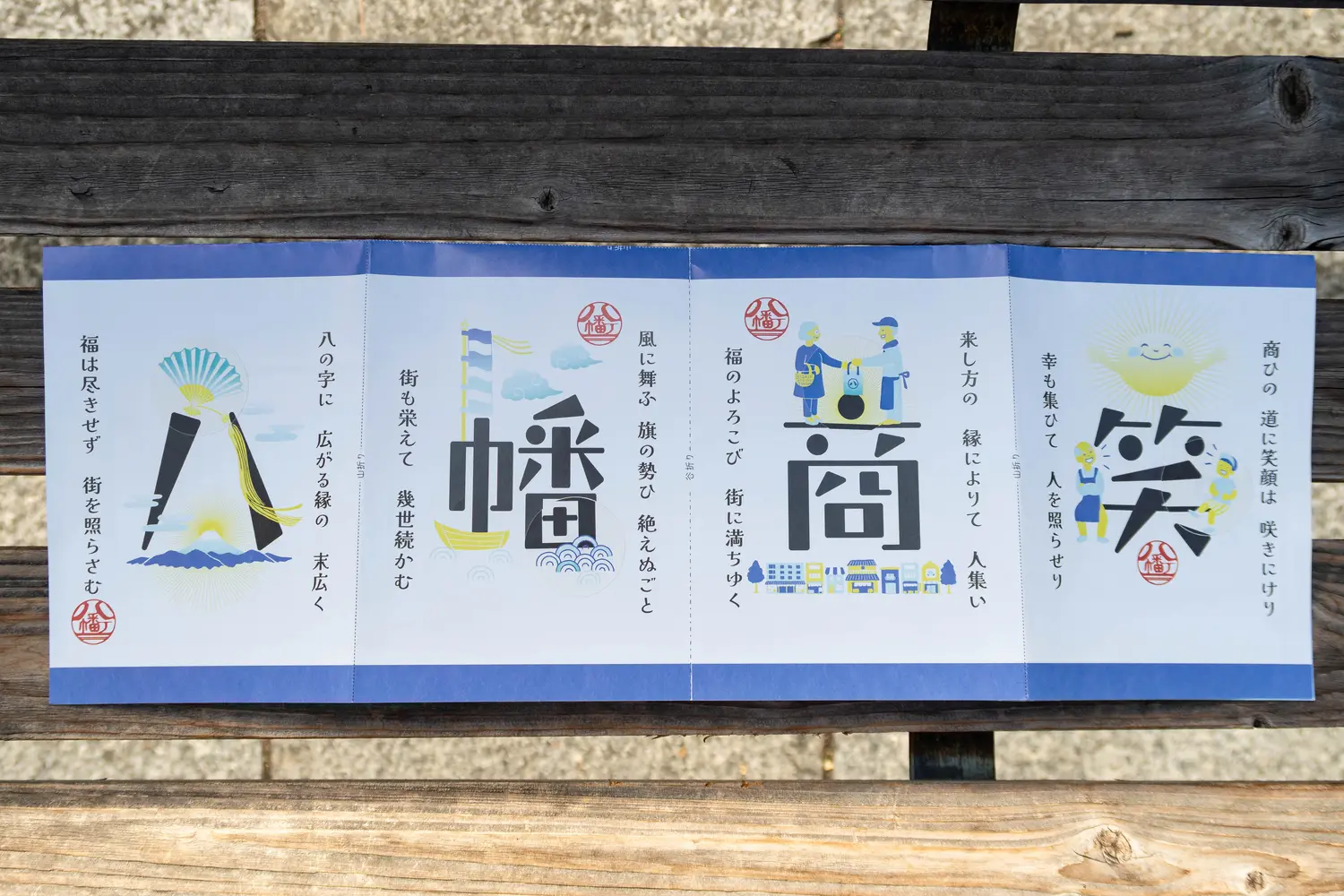 八幡商店街で『御朱印シールラリー』が開催中!期間は11/30まで、11:00〜17:00。台紙に描かれた8種の御朱印デザインに、番号と対応したシールを集めて貼るイベントです。全て揃えると先着200名に500円分の商品券を進呈!商店街を歩きながら気軽に参加できます。