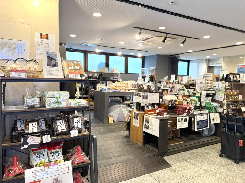 取材場所は八王子スカイホテル(八日町)。ロビーには作品や地元にこだわった製品、野菜、お土産などが展示販売されています。saoriさんのコーナーもあり、原画だけでなく、企業とのコラボ製品も並べられています。奥にあるカフェスペースにてインタビュースタート。