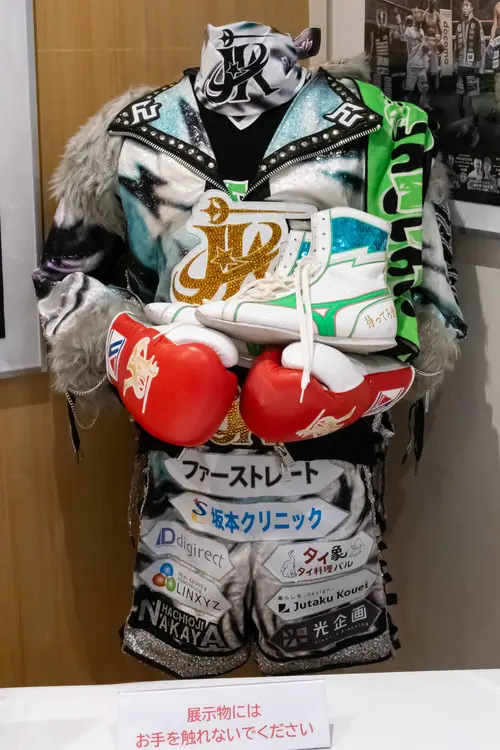また、ガウン・グローブ・トランクスも展示されています。間近で見ると存在感があり、迫力や気迫が感じられます!