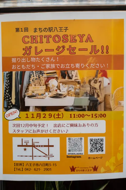 2025年11月29日(土)、『まちの駅八王子 CHITOSEYA』で、初のガレージセールが開催されます。衣類や雑貨など掘り出し物がずらりと並ぶ1日限定のイベント。お友だちやご家族と気軽に立ち寄れるローカル感あふれる催しです。