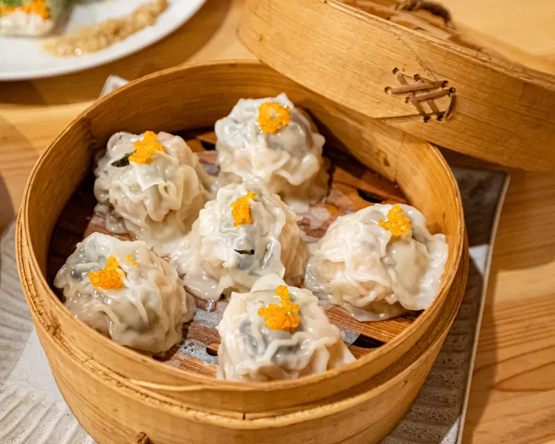 蒸籠で提供される大きめなシュウマイ。中にはなんと牡蠣が入っています。海鮮を使ったシュウマイは海老シュウマイや蟹シュウマイは見かけますが、牡蠣シュウマイは初めてかも。ゴロっと大きなサイズなのも魅力です。