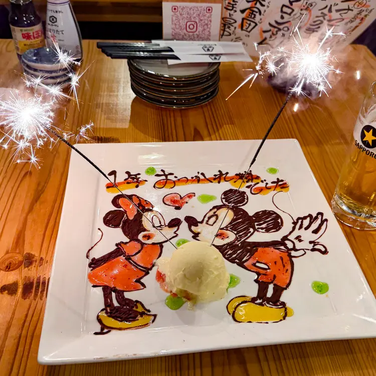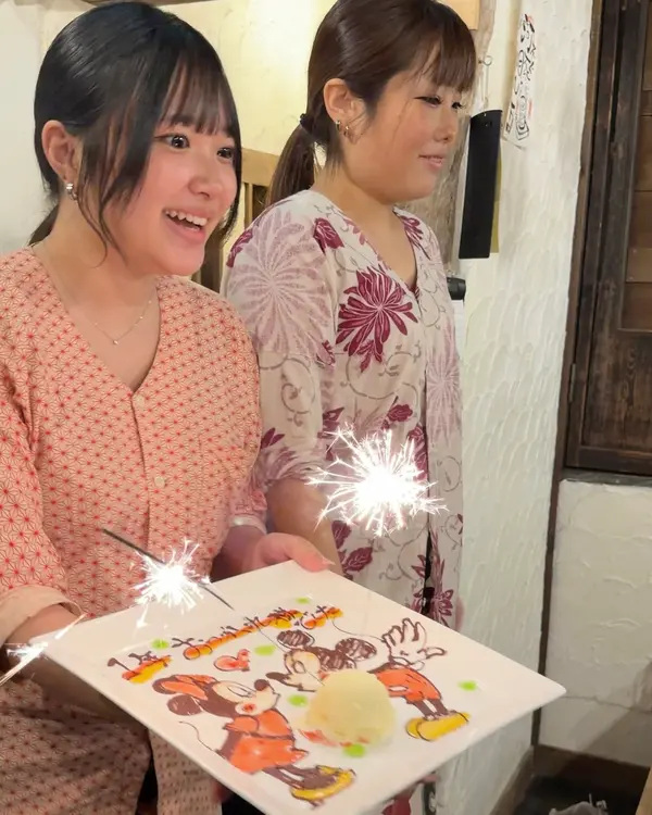 記念日や宴会に嬉しいデザートプレートの手描きサービス。しゃにむにでは「プロなの!?」と思えるぐらいクオリティの高い絵が描けるスタッフさんがいます。大切な日の思い出にぜひ手描きサービスをご活用ください。