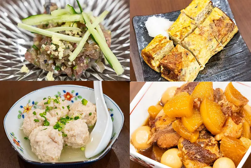 続いていただいたのは、アジのなめろう、ひき肉入りのだし巻き玉子、ふわふわ食感のつくね、味がしみしみ&ゴロゴロお肉の牛煮込み。どれも大好評でした!