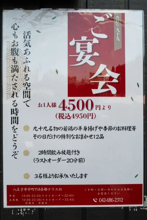 土日祝 12:00~23:30(LO 22:45) - 定休日