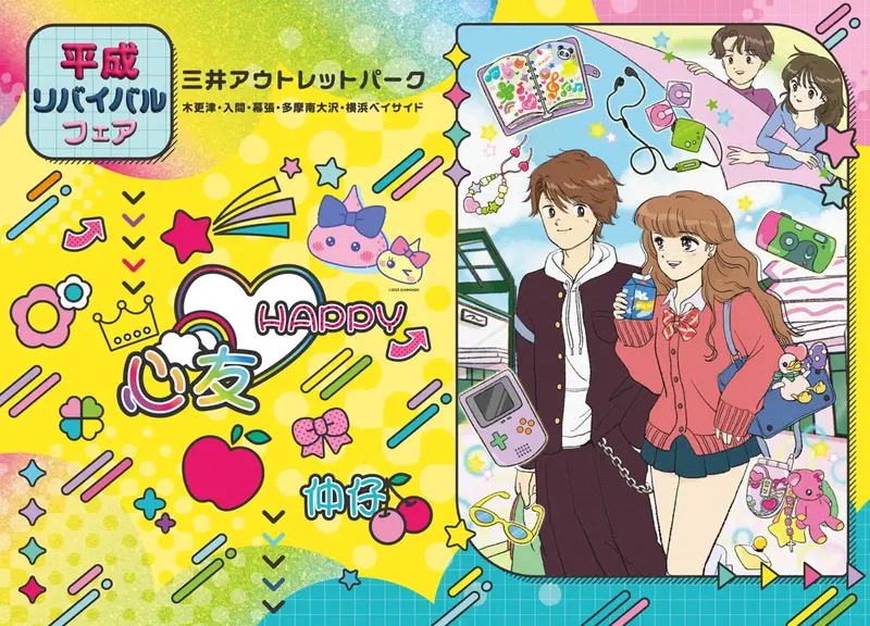 今回のフェアでは、平成中期に人気だったアイテムや文化を体験できる企画を多数展開。メインビジュアルは、90年代~平成初期の空気を思わせるレトロアニメ調のイラストで、思わず胸がキュッとする“平成感”を表現しています。