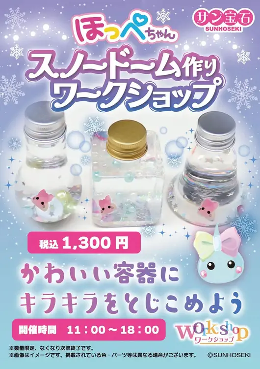 平成後期に大流行したサン宝石のキャラクター「ほっぺちゃん」が入った「スノードームワークショップ」も開催!