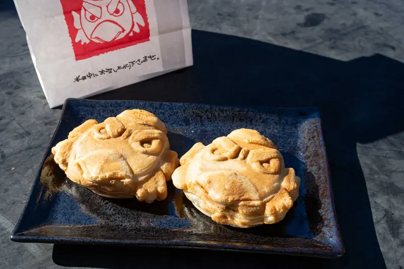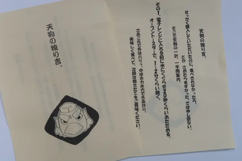 この天狗の凛々しい表情!焼きたては外がカリッとしていて香ばしさが際立ちます。