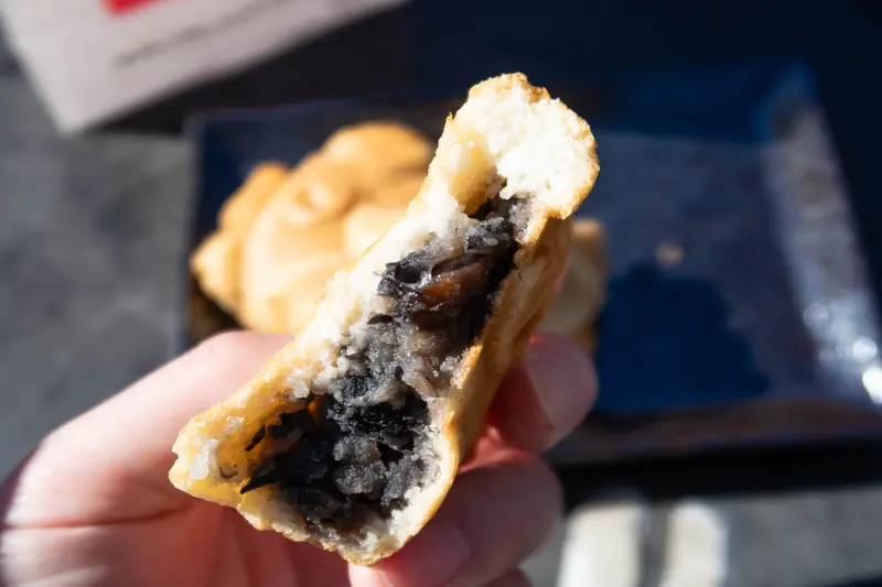 中はもちもち食感で、北海道産の大粒黒豆あんがごろっと入っています。甘さ控えめで食べやすく、黒豆の食感がしっかり感じられるのが魅力。