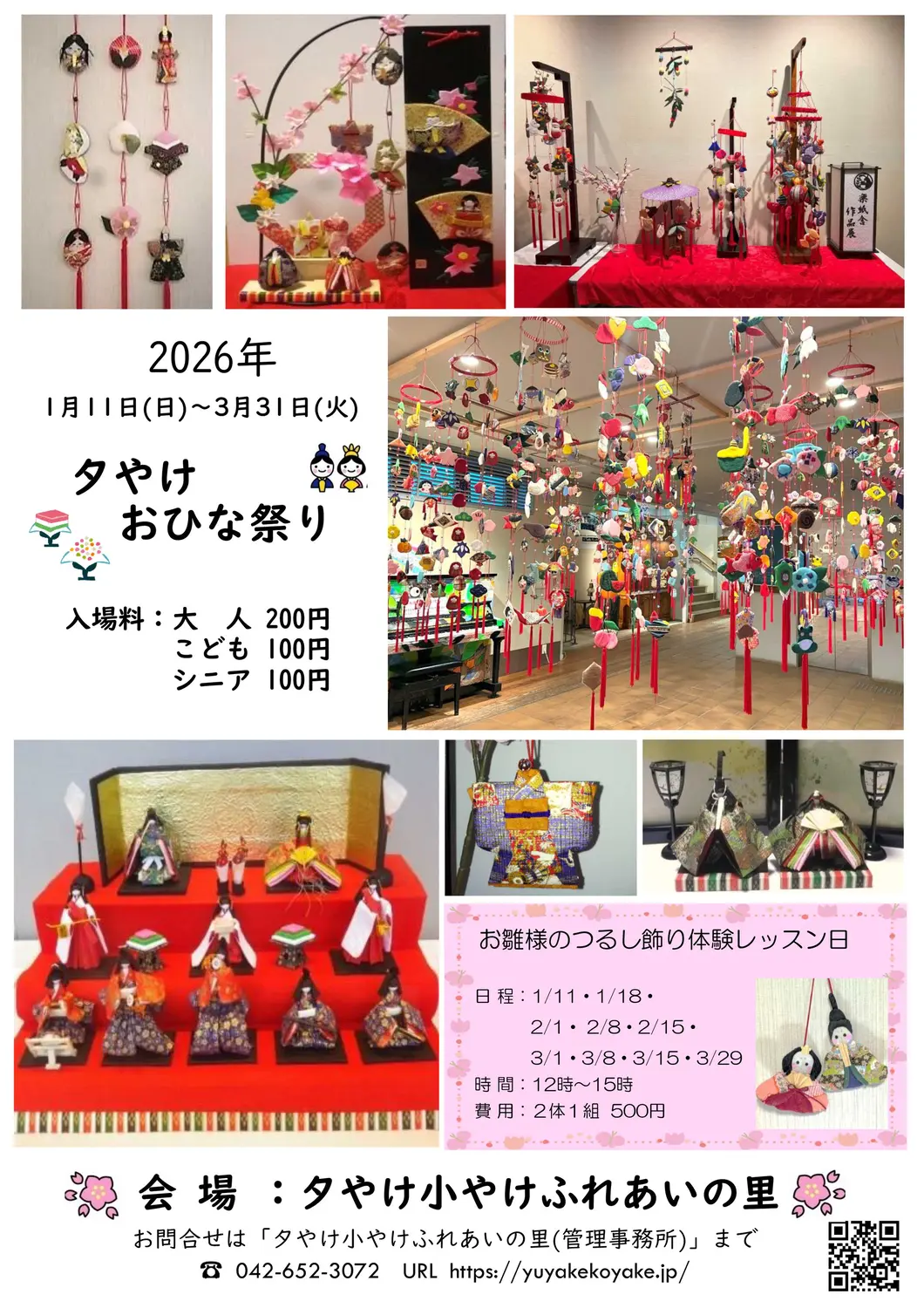 2026年1月11日(日)から3月31日(火)まで、夕焼小焼館にて「夕やけおひなまつり」が開催されます。体験講座「和紙の工作」で制作された吊るし雛や紙人形のお雛様を展示。詳細は下記チラシ、もしくは公式HPをご確認ください。