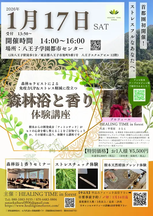 忙しくてなかなか自然の中へ行けない、そんな方にぴったりの癒しイベントが八王子で開催されます。