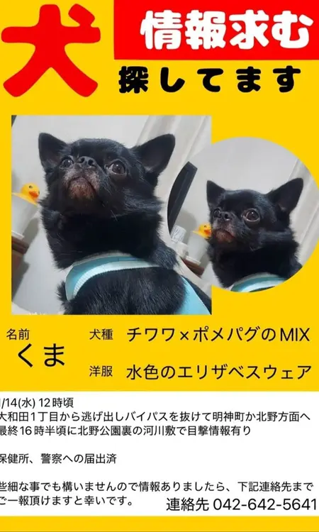 【八王子民の力を貸してくれ!】犬の“くまちゃん”が迷子に・・・みんなで探そう見つけよう!