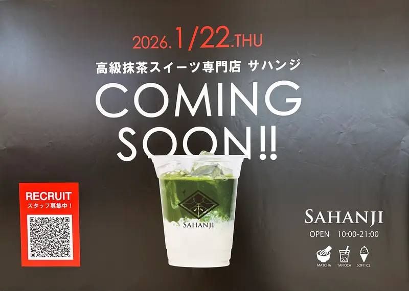 本格抹茶の味わいを、もっと身近に楽しめる抹茶専門店『SAHANJI』(サハンジ)が、2026年1月22日(木)にイーアス高尾にオープンします。買い物の合間やひと息つきたいときに立ち寄りやすい、新しい抹茶スポットとして注目されそうです。