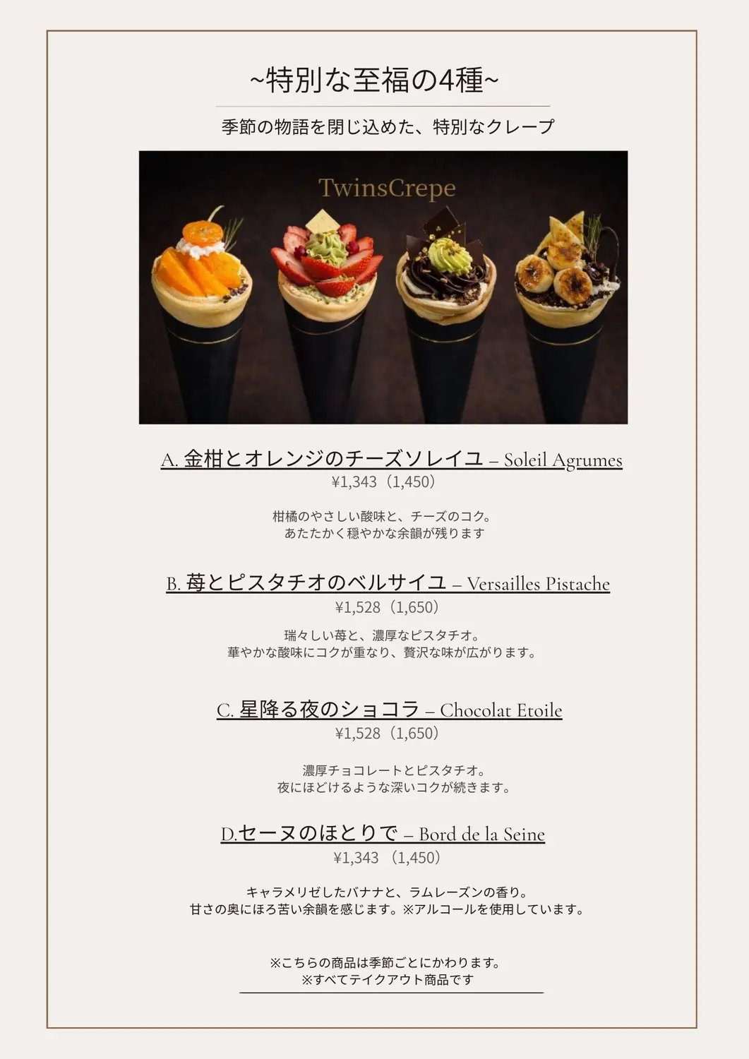 2026年1月30日、建て替え期間を経てリニューアルオープンする『Twins crepe(ツインズクレープ)』。「双子の姉妹」が手掛けるクレープは、かつての親しみやすさに、パリの街角のような「洗練」を纏って戻ってきました!