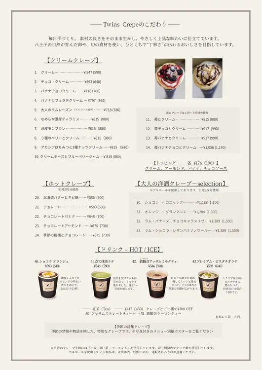 白を基調にした外観と、以前から通っていた人ほど、その変化に少し驚き、そしてすぐに「Twins crepeらしさ」を感じるはずです。