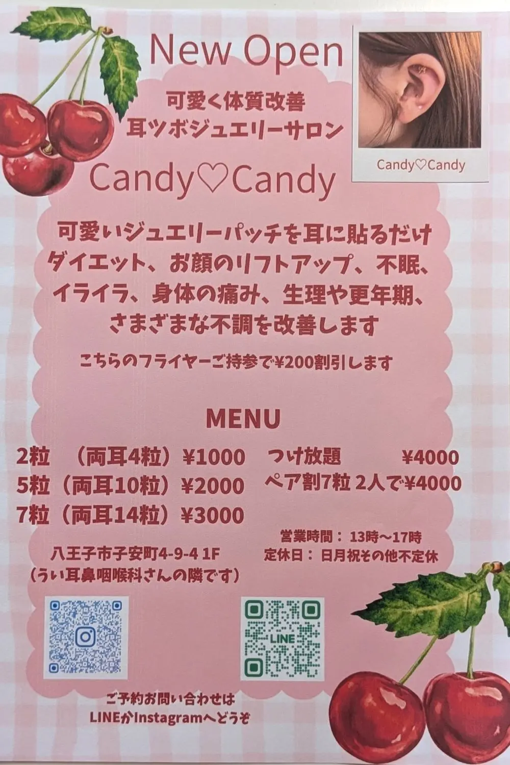 耳ツボジュエリーは、見た目を楽しむアクセサリーという印象を持つ方も多いかもしれません。八王子駅南口近くにある耳ツボジュエリーサロン『Candy♡Candy』では、昔ながらの耳介療法をベースに、健康とおしゃれを同時に楽しめる施術が受けられます。今回は、その魅力を取材しました。