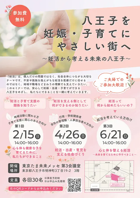 そんな視点から妊活を考える市民向けセミナー「妊活から考える未来の八王子」が、八王子で開催されます。