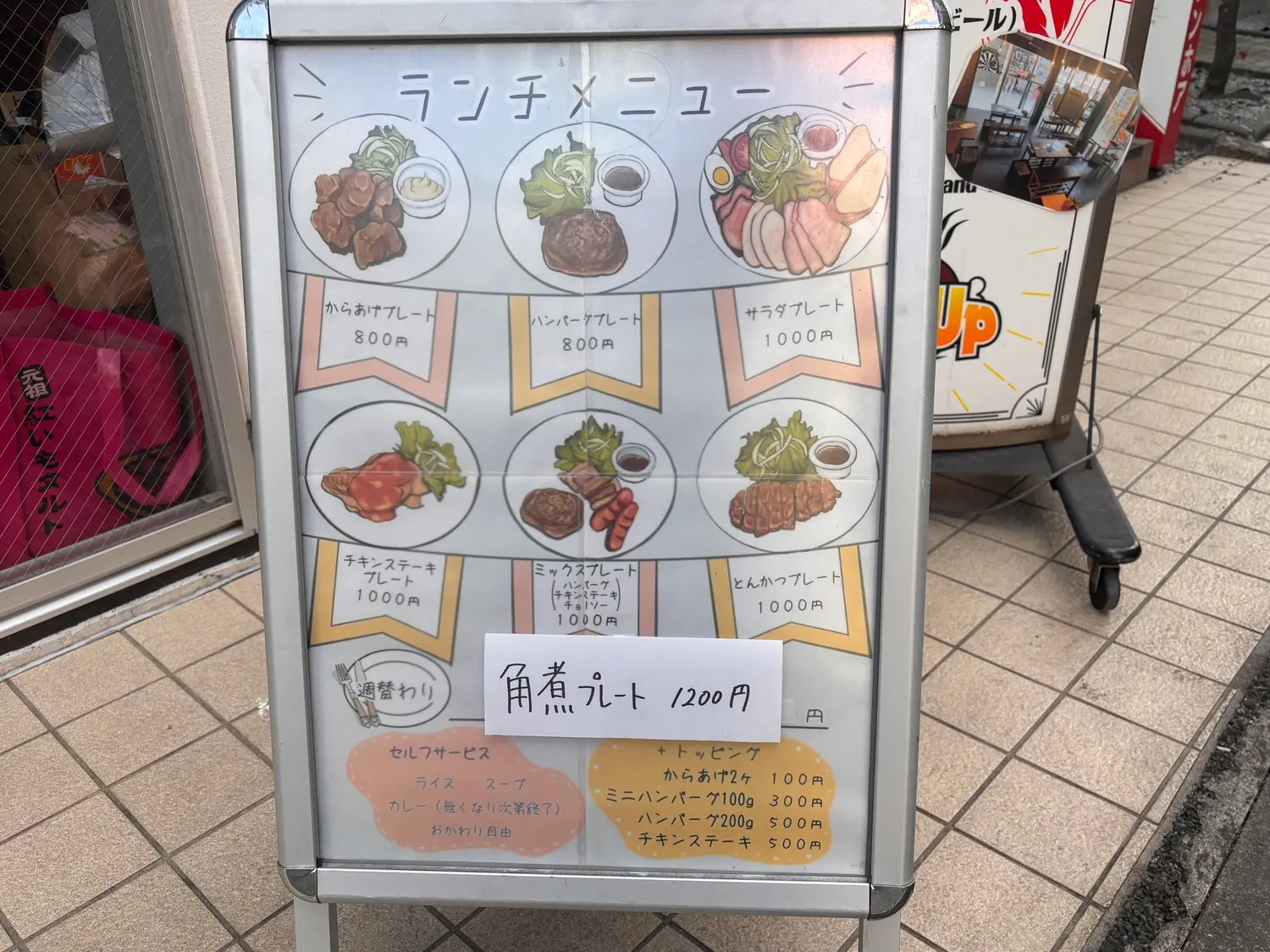 ランチタイムには、ライス・スープ・カレーがおかわり自由のランチメニューを提供しています。なかでもハンバーグプレートが一番人気とのこと!