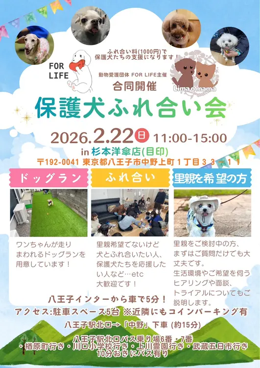 次回の「保護犬ふれあい会」2月22日。今後、毎月の開催予定とのこと。よみっこでもお知らせしますので、皆さんの支援をお願いいたします。(中塚)