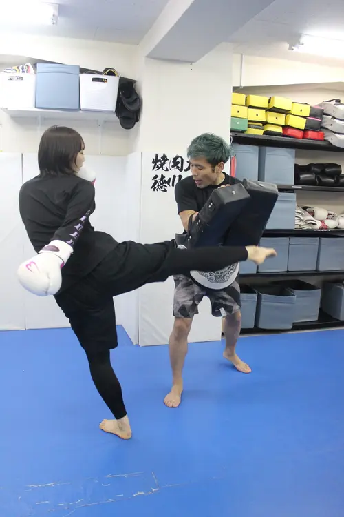 そして八王子会に「面白そう。早速入りたいですね」と取材を終え、キックボクシングの指導が始まりました。