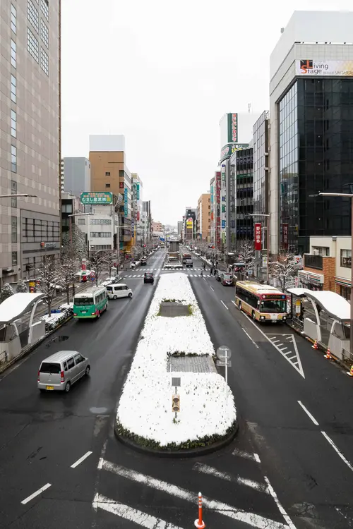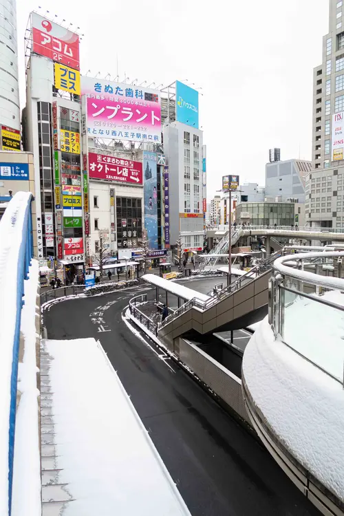 雪解けが進んだ西八王子駅周辺