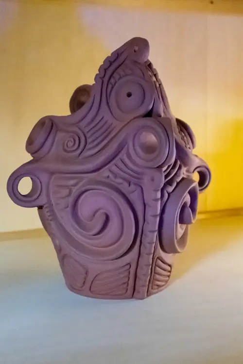 会場では、衣装デザイナーであり縄文土器作家でもある西野慎也さんが制作した縄文土器作品が見られます。
