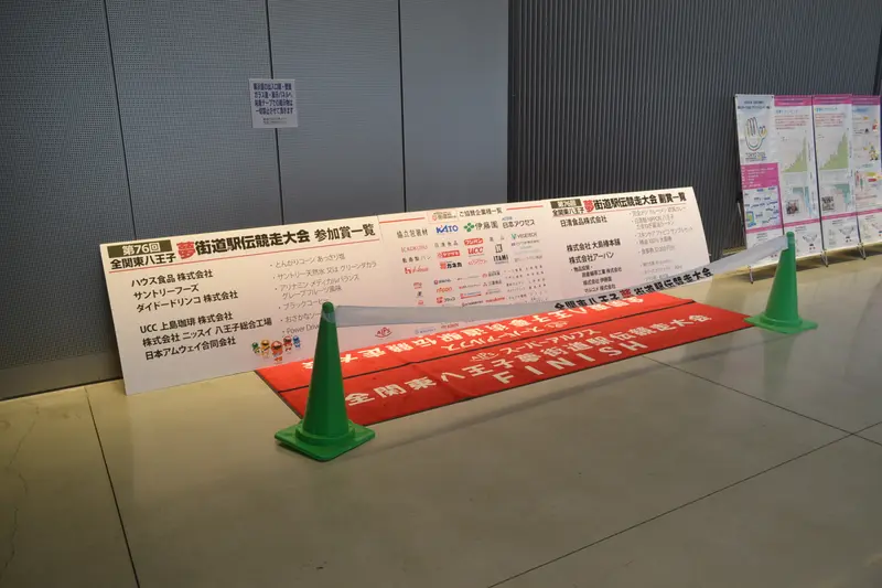大会本部の東京たま未来メッセにはフィニッシュラインを展示