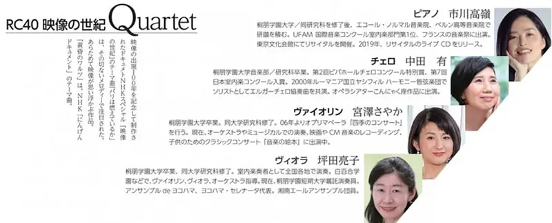 「RC40 映像の世紀 QUARTET」によるコンサートを開催。NHK『映像の世紀』で知られる作曲家・加古隆氏の作品を中心に演奏されます。