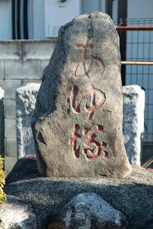 鳥居をくぐろうと進むと、左手の「あゆ塚」に目がとまります。1716年(享保年間)ごろから浅川でとれた鮎を幕府へ献上していたそうで、その鮎の霊を慰めるために建てられた塚だそうです。地域の歴史を感じますね。