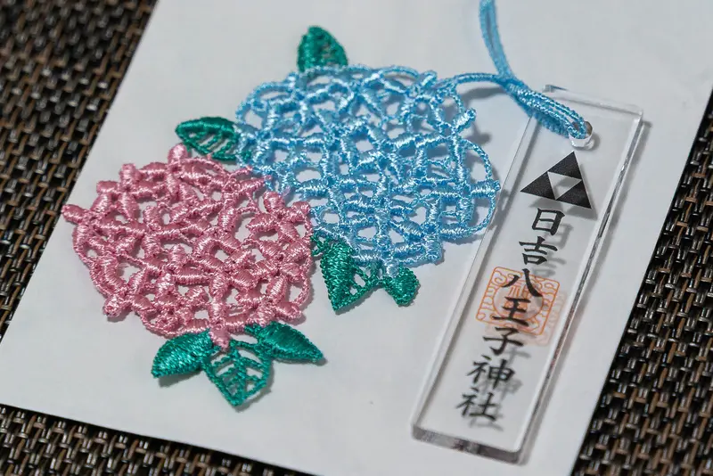 中でも注目なのが、アジサイをモチーフにした水引風のお守り。季節感もあって、デザインがとても可愛らしいです。