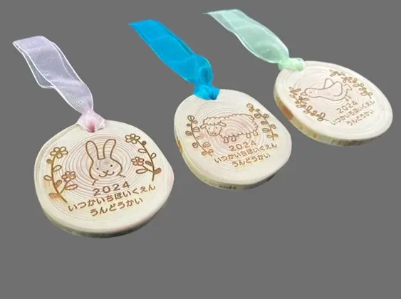C:あきる野市の五日市保育園からの依頼で製作した木製メダル