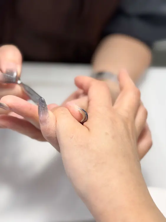 まずは丁寧な甘皮処理から。ベースを整えるフェーズが本当に大事。