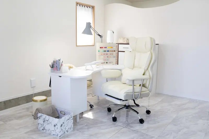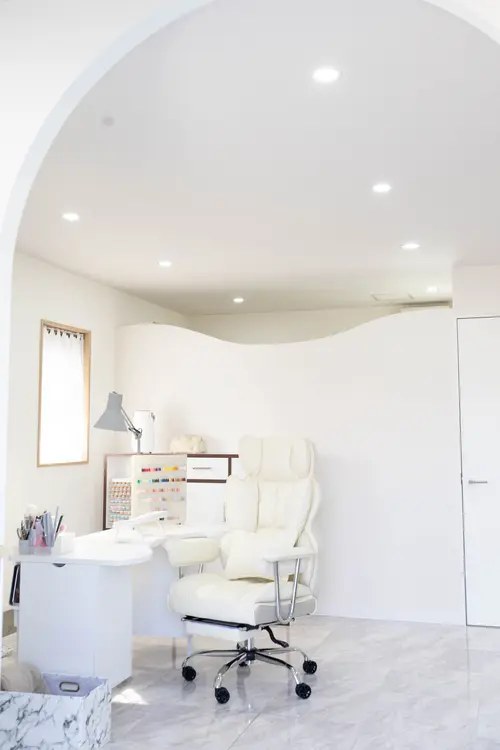 席数は各1席。プライベート感もあり、周囲を気にせずゆったり過ごせる雰囲気。ネイルもまつげも同じ空間で整えられるからこそ、導線もスッキリ。ここにいる時間そのものが「自分のメンテナンスタイム」になる、そんなサロンです。